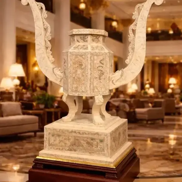 Incensario ritual chino tipo ding con asas en forma de dragón