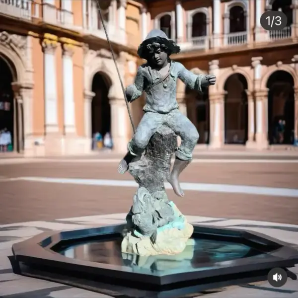 Escultura de fuente «Niño pescador» (bronce patinado)