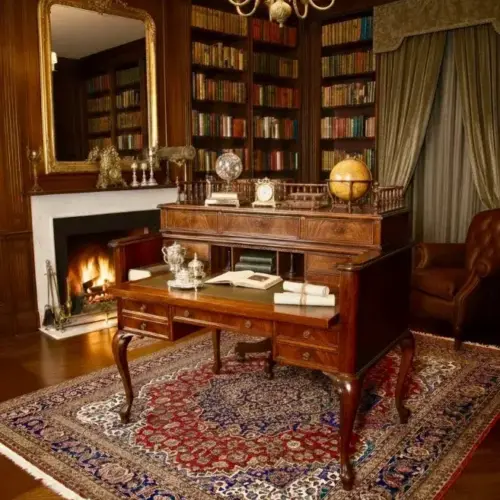 Imponente conjunto de aparador antiguo en madera maciza, con frentes ricamente tallados, herrajes metálicos y patas torneadas. Se acompaña de un gran espejo enmarcado a juego, de líneas sobrias y elegantes, que aporta profundidad y luminosidad al espacio. Pieza de notable presencia, ideal para recibidores o salones clásicos, combinando función de almacenaje y alto valor decorativo.