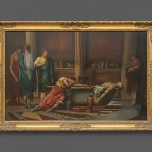 Óleo de gran formato con escena clásica de inspiración grecorromana