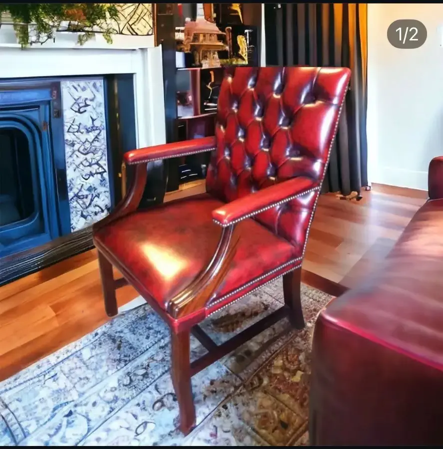 Sillón de despacho Chesterfield en cuero burdeos